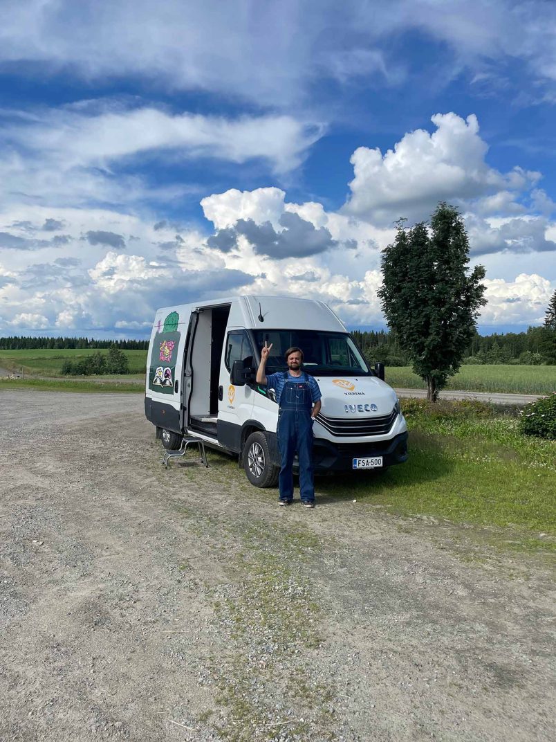 Kääntäjä ja muusikko Jukka Nissinen vaihtoi alaa kirjastotyöhön. Nyt hän ajaa Suomen ensimmäistä lehmänlannalla kulkevaa kirjastoautoa.