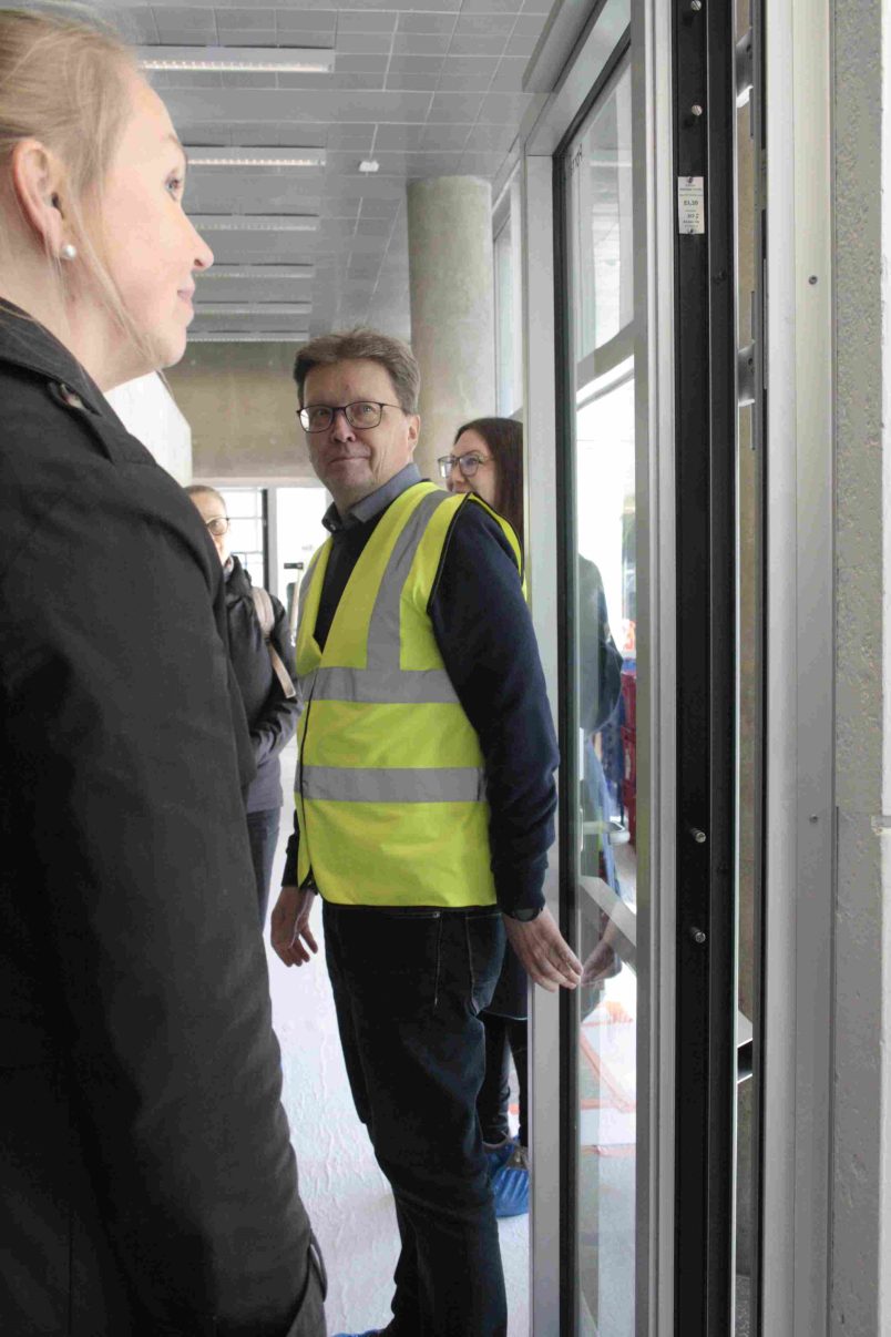Yläkerroksiin on nyt entistä helpompi päästä, sillä käyttöön on saatu uusi hissi, joka vie neloskerrokseen asti. ”Vanha yleisöhissi ei koskaan päässyt näin ylös.”
