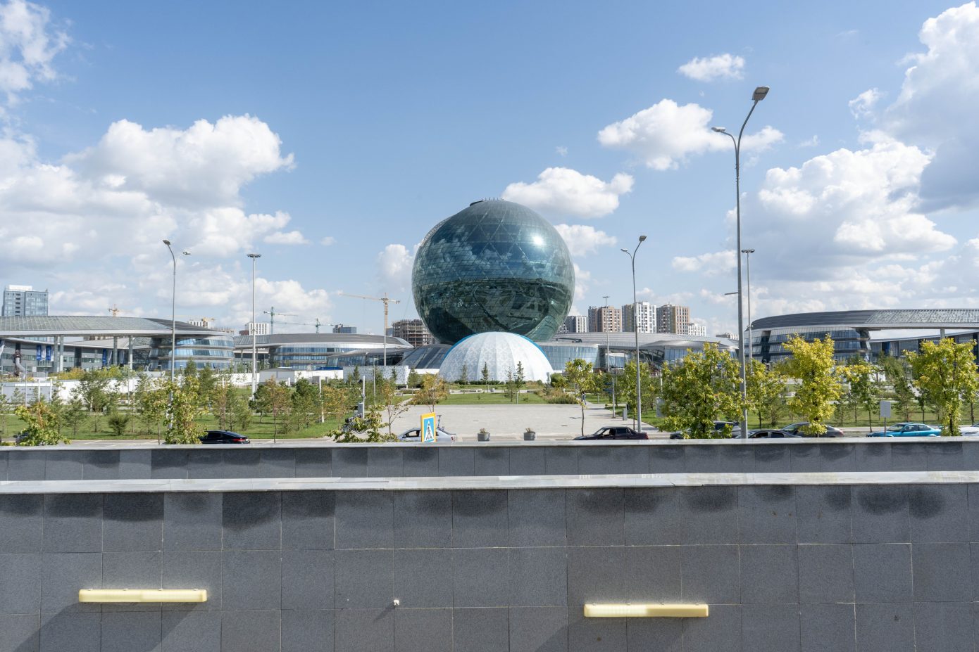 Saavun Astanan kongressikeskukseen, joka kohoaa loistohotelli Hiltonin vieressä. Valtava halli rakennettiin vuonna 2017, kuten myös vieressä oleva jättimäinen lasi- ja teräspallo, Nur Alem. Nämä monumentit valmistuivat Future Energy -nimistä maailmannäyttelyä varten.
